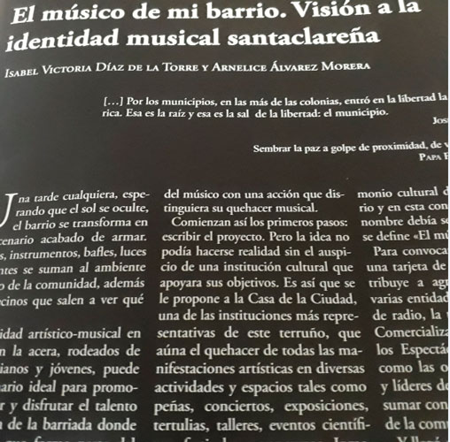 Es un texto dedicado a uno de los proyectos culturales comunitarios de más arraigo en la ciudad de Santa Clara creado en el 2006 a partir de la experiencia docente e investigativa de la musicógrafa Isabel Días de la Torre en las escuelas de artes de la provincia.