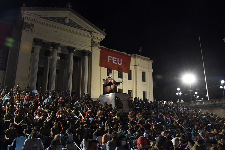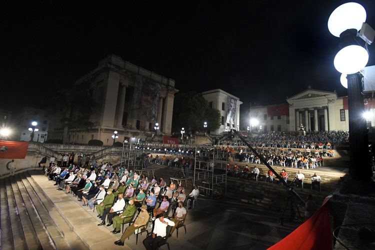 Una velada político-cultural en el cuarto aniversario de la desaparición física del invicto Comandante en Jefe Fidel Castro Ruz tuvo lugar en la escalinata de la Universidad de La Habana, la cual contó con la presencia del Presidente Miguel Díaz-Canel Bermúdez.