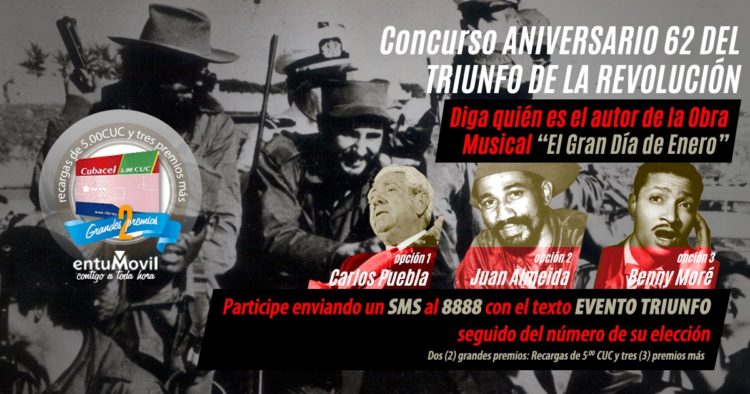 El periódico Trabajadores y los servicios entuMovil, de la empresa Desoft convocan a los usuarios de la telefonía móvil a participar en el Concurso ¡Triunfo de la Revolución!, dedicado a la celebración del aniversario 62 de la Revolución.
