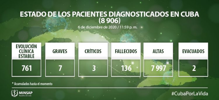 - Ciudadana cubana de 82 años de edad, del municipio Sagua La Grande, provincia Villa Clara. Contacto de caso confirmado. Se mantienen en vigilancia: 13 contactos.