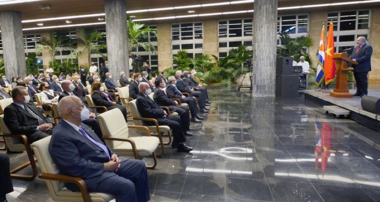 Presidido por el General de Ejército Raúl Castro Ruz, Primer Secretario del Comité Central del Partido Comunista de Cuba; el Presidente de la República, Miguel Díaz-Canel Bermúdez, y el embajador extraordinario y plenipotenciario de Vietnam en Cuba, Le Thanh Tung, se conmemoró el 60 aniversario de las relaciones diplomáticos entre ambos países.