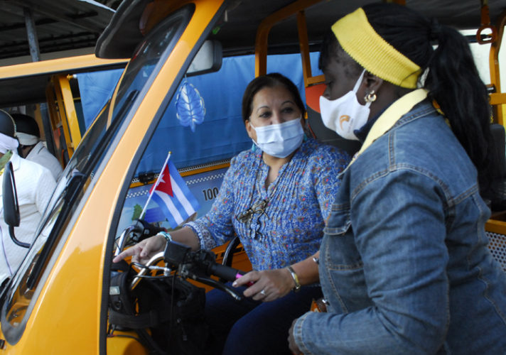 Un emotivo encuentro con las mujeres que conducen los Ecotaxis pertenecientes a la Agencia de Taxis Número 9 de la Empresa Taxis Cuba sostuvo hoy Teresa Amarelle Boué, miembro del Buró Político del Partido Comunista de Cuba y secretaria general de la FMC.