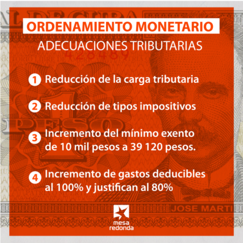 “Ahora, por ejemplo, con la transformación lo que se ha hecho es que ese impuesto que tenía antes equivalencia entre el CUC y el dólar, va a estar expresado en pesos cubanos según la tasa definida. O sea, no hay afectación a estas personas jurídicas extranjeras en términos de incrementos impositivos, sino que la diferencia responde estrictamente a la tasa cambiaria”.
