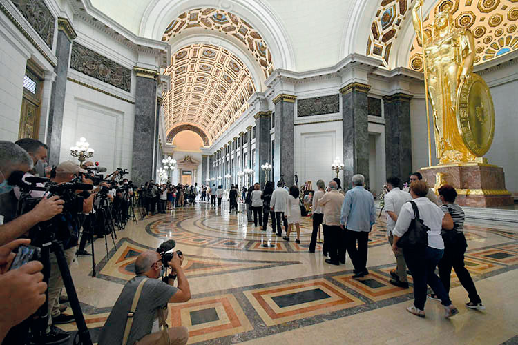 En la fotografía que acompañaba la urna con sus cenizas, Eusebio Leal Spengler aparece besando la bandera cubana. En el esplendoroso salón de los Pasos Perdidos del Capitolio Nacional, donde el pueblo fue a rendirle tributo al gran historiador, el escudo de la palma solitaria es mucho más que un adorno en lámparas y mobiliario: ilumina y guía. Y mientras las personas desfilaban frente a los restos de este intelectual raigal, se escuchaban las solemnes notas de Paráfrasis del Himno Nacional de Cuba, compuesta por Hubert de Blanck.