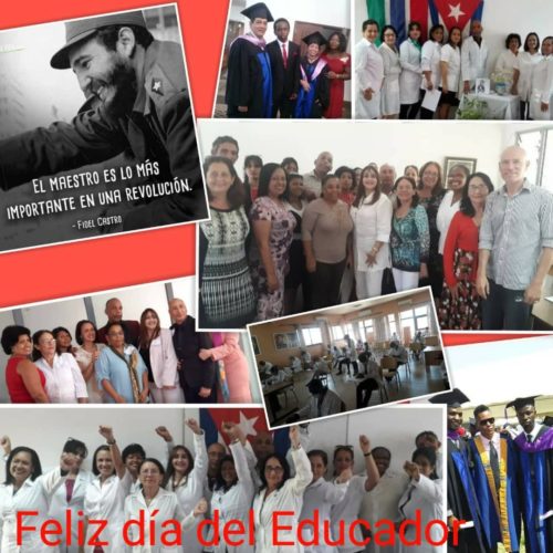 El ejemplo de Cuba y su proverbial vocación solidaria e internacionalista se ha multiplicado, y en tal sentido profesores cubanos han brindado su ayuda en numerosos países hermanos, contribuyendo así a llevar la luz del conocimiento a los pobres de la tierra, en el noble empeño de llevar el pan de la enseñanza y el amor a todos.