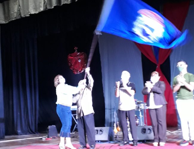 Isdalis Rodríguez Rodríguez, miembro del Secretariado Nacional de la CTC, entregó el estandarte a Rubén Remigio Ferro, presidente del TSP.