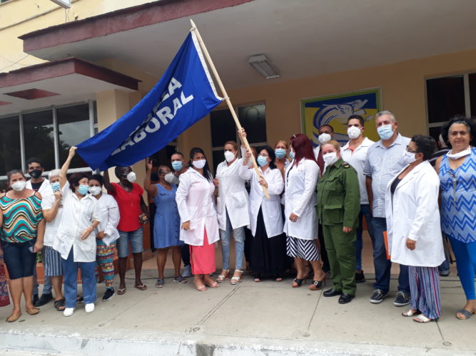 Además, fueron estimulados trabajadores destacados con diferentes condecoraciones. La Bandera de Proeza Laboral le fue concedida a diferentes colectivos entre ellos los del transporte, la Geominera del Centro, el comercio, el Laboratorio de Biología Molecular, y los hospitales Celestino Hernández y el Militar Manuel Fajardo.
