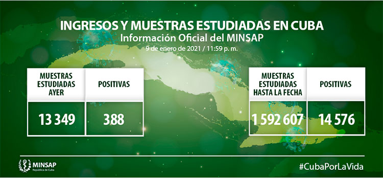 Cuba confirmó al cierre de este domingo 10 de enero de 2021, una cifra de 431 nuevos casos de COVID-19, dos fallecidos y 159 altas médicas informó en conferencia de prensa el doctor Francisco Durán García, director nacional de Epidemiología del Ministerio de Salud Pública.