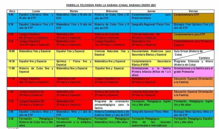 Se recuerda además, que la capital del país mantiene una programación por Canal Habana, ajustada a las condiciones actuales y para lo cual se tuvo en cuenta que el curso 2020-2021 inició en esta región el 7 de diciembre, de ahí que se ubique de una forma diferenciada respecto al resto del país.