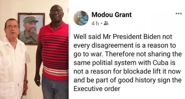 En una nota publicada en su muro en la red social Facebook, Modou Peh exhortó al nuevo inquilino de la Casa Blanca a convertirse en parte de la buena historia y poner fin a la guerra económica, comercial y financiera que su predecesor,el saliente Donald Trump, le arreció a la isla caribeña.