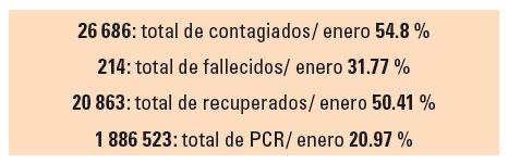 El comportamiento de la pandemia en Cuba en el primer mes del año rompió todos los moldes y números desde que en marzo del 2020 detectamos el primer caso. Todas las provincias reportaron indeseados récords, pero La Habana, Guantánamo, Santiago de Cuba y Matanzas dispararon las alertas con la mayor cantidad de focos y contagiados. El país incrementó las pruebas de PCR y los médicos desbordaron la atención para dar altas y salvar vidas, aunque lamentablemente también crecieron los fallecidos. Enero nos enseñó que la COVID-19 no es juego ni números matemáticos. Es real y mata. Es imperioso cuidarse.