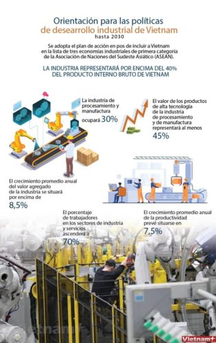 En los últimos años Vietnam ha firmado cinco acuerdos de libre comercio (TLC), incluidos los de nueva generación y alto nivel, y se ha colocado al centro de una red de 16 pactos regionales de ese tipo. En los mercados de más de 200 países pueden encontrarse hoy artículos diversos manufacturadas por empresas vietnamitas, pero las cantidades no son estables. No obstante, la proyección para el 2045 contempla que la producción industrial aporte el 40 % del pib y que el valor de los productos de alta tecnología represente el 45 % del total.