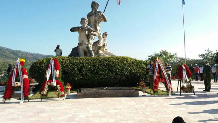 Respetando las medidas para frenar el rebrote de la COVID-19 por el que atraviesa la provincia, estuvieron presentes en el sentido tributo las máximas autoridades políticas y gubernamentales, el Héroe del Trabajo Lázaro Expósito y la vicepresidenta del Consejo de Estado Beatriz Jhonson, respectivamente, entre otros dirigentes.