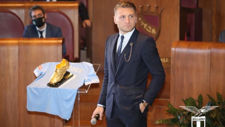 El delantero italiano de la Lazio Ciro Immobile recibió la Bota de Oro 2020 por haber sido el futbolista que más goles anotó en las ligas europeas con 36.