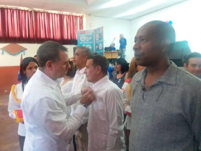 El Grupo Empresarial GEOCUBA recibió este lunes, de manos de Ulises Guilarte De Nacimiento, secretario general de la Central de Trabajadores de Cuba, la Bandera de Proeza Laboral, en reconocimiento a su trabajo, al servicio de la salud pública cubana, para contrarrestar la expansión de la COVID-19 en el país.