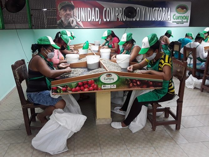 Explicó que ahora está en proceso la cosecha 2020 –2021 y el grano tiene más del 90 por ciento de primera calidad, lo que posibilita un mejor trabajo con la escogida manual de la materia prima y mayor productividad en la selección del café para la exportación.
