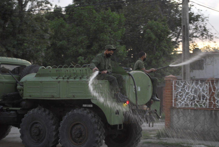En tanto, jóvenes combatientes de las FAR realizaron la higienización de las calles del reparto. Otra acción para combatir el nuevo coronavirus que puede estar en cualquier sitio.