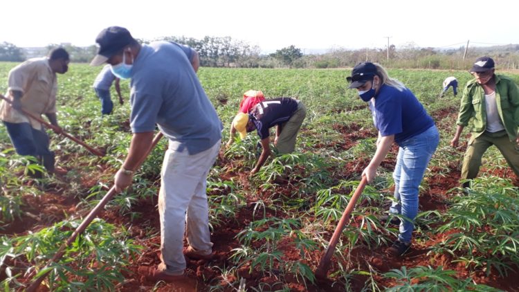 La jornada de este jueves comenzó con un trabajo productivo en áreas de la UBPC Ceiba Mocha. Foto: Noryis.