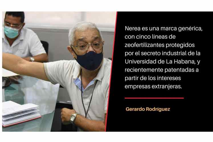 Nerea es una marca genérica, explicó, con cinco líneas de zeofertilizantes protegidos por el secreto industrial de la Universidad de La Habana, y recientemente patentadas a partir de los intereses empresas extranjeras.