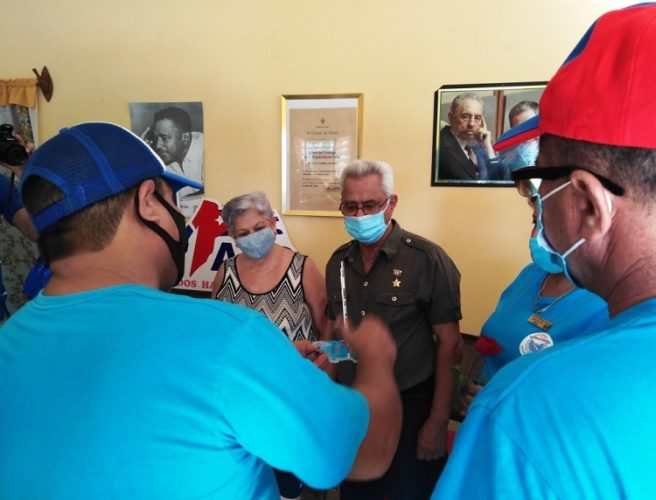 Así que con el cumplimiento de las medidas higiénico-sanitarias una representación de dirigentes obreros intercambió con los héroes.