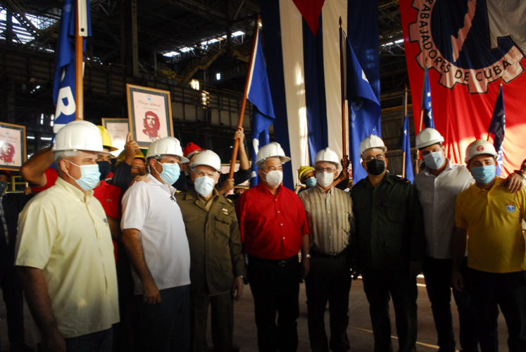 Ulises Guilarte De Nacimiento, miembro del Buró Político del Partido Comunista de Cuba y secretario general de la CTC y el Comandante de la Revolución y viceprimer ministro del gobierno Ramiro Valdés Menéndez, entregaron el estandarte a siete colectivos: la Empresa Constructora de Obras Industriales número 6, de Cienfuegos; la Empresa Constructora Integral número 3, de Moa, y la Empresa Central de Equipos Cubiza.