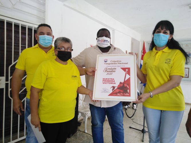 En nombre del colectivo, el reconocimiento lo recibieron la Dr. C Tamara Lobaina Rodríguez, directora general de BioCen y Roberto Chávez Oliva, secretario general del buró sindical, de manos de Eulogio Pimentel, vicepresidente del grupo empresarial BioCubaFarma y Beatriz Silva Nodarse, miembro del secretariado del Sindicato Nacional de los Trabajadores de la Salud (SNTS).
