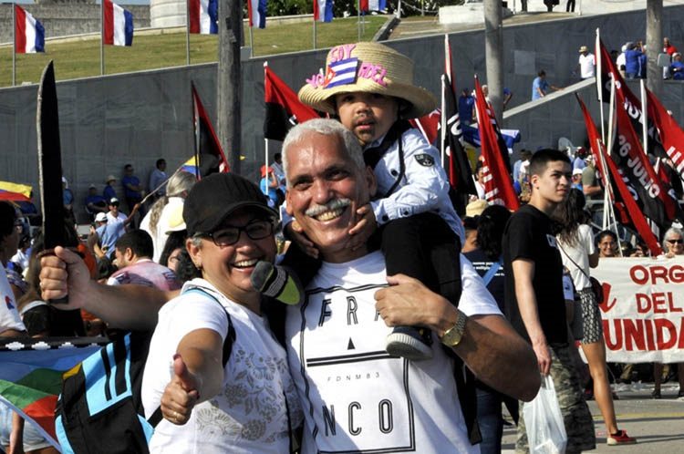 Hoy el mundo sufre esta calamidad, pero sabremos vencerla. En nuestros corazones estamos hoy desfilando a lo largo y ancho de nuestro país con alegría y entusiasmo celebrando el Primero de Mayo.