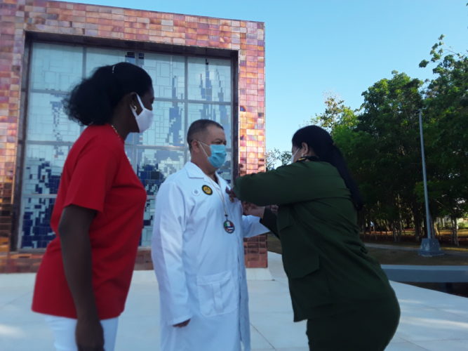 “Entregar la Medalla Hazaña Laboral, que se otorga por cumplir tareas asignadas y contribuir de forma notable al desarrollo económico y social de Cuba, a un médico del contingente Henry Reeve, creado en el 2005 por el Comandante en Jefe Fidel Castro Ruz, multiplica el orgullo en el Día Internacional de los Trabajadores, pues ellos son ejemplo de valor y consagración”, expresó la secretaria de la CTC provincial.