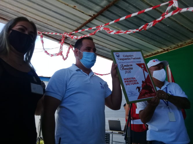 En el acto de entrega de la Condición Vanguardia Nacional, Yaciel Mirabal Martínez, secretario general de la sección sindical, y con más de seis años en la DIP, explicó que en Mi Aporte a la Patria entregaron más de 165 mil pesos, y donaron 3 mil 840 pesos para el enfrentamiento a la COVID-19, pandemia que si bien les ha afectado por tener trabajadores en cuarentena en su comunidad, no han lamentado ningún contagio.