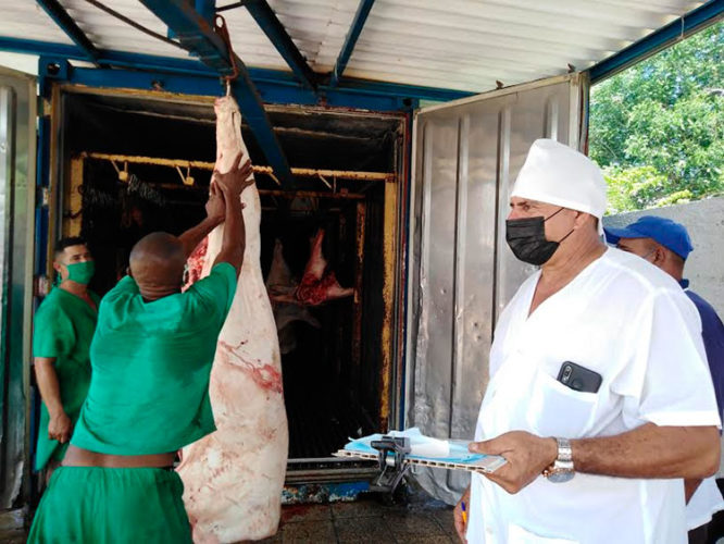 El administrador de la unidad, Ridel Luis González, tablilla en mano lleva el control de las carnes que entran al contenedor refrigerado y salen hacia el salón de producción. El dinamismo en los procesos de la materia prima le resta tiempo para el diálogo, pero él no desaprovecha la oportunidad para destacar el quehacer del colectivo.