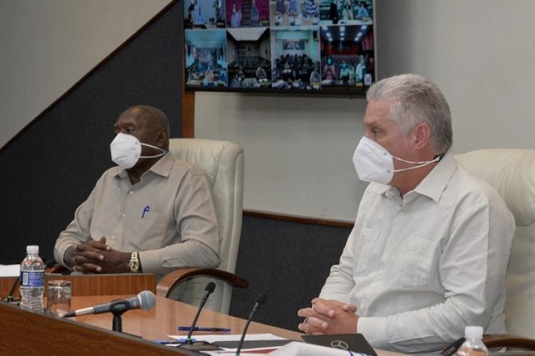 En la reunión del Grupo temporal de trabajo del Gobierno para la prevención y control de la COVID-19 participaron el miembro del Buró Político y Vicepresidente de la República, Salvador Valdés Mesa, y el integrante del Secretariado del Comité Central del Partido, Jorge Luis Broche Lorenzo.