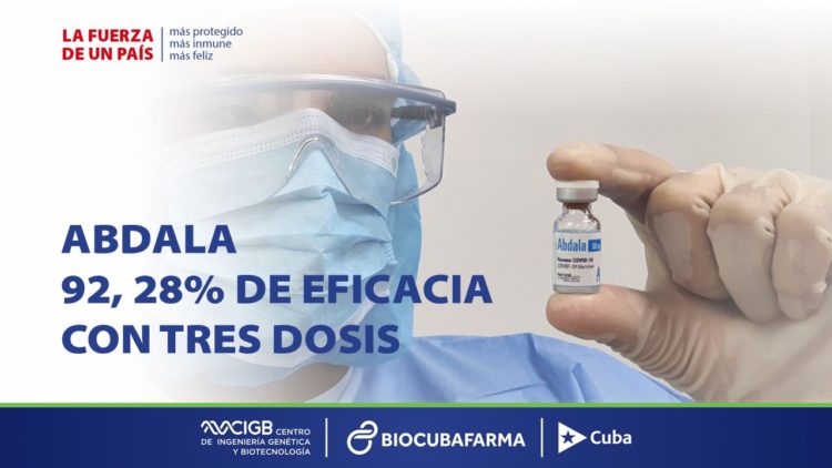 Candidato vacunal Abdala muestra 92,28% de eficacia en su esquema único de tres dosis (+ Video)