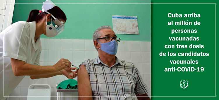 Un millón seis mil 300 cubanos han completado el esquema de vacunación con las tres dosis de los candidatos vacunales anti-COVID-19 Soberana 02 y Abdala, y seis mil 431 convalecientes recibieron Soberana Plus, tras aplicarse en el país un total de cinco millones 676 mil 321 dosis hasta el 27 de junio.