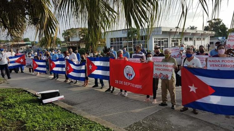 Actos de reafirmación revolucionaria como repudio a las patrañas anexionistas e imperiales que forman parte de una operación mediática contra Cuba, se realizan en todos los centros laborales de Villa Clara.