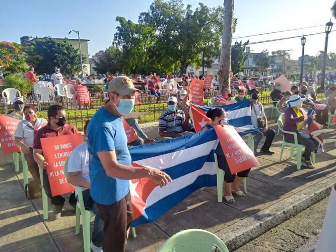 Una representación del pueblo de Villa Clara se reunió esta mañana de sábado en la explanada de la sede del Tribunal Provincial, conocida como el antiguo parque de la Audiencia de la ciudad capital de la provincia, para exigir la eliminación del bloqueo estadounidense y defender nuestro proyecto social de la operación mediática y actos de guerra no convencional que han impactado la realidad cubana en las últimas jornadas.