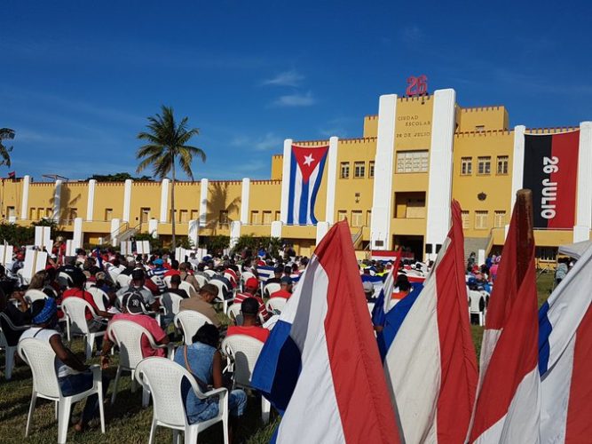 La ciudad heroica, rebelde, bravía, ‟la infatigable Santiago”, como llamara José Martí a esta tierra, volvió a levantarse por Cuba, esta vez desde el histórico polígono del otrora cuartel Moncada, en acto de reafirmación revolucionaria celebrado en horas de la mañana de este sábado.