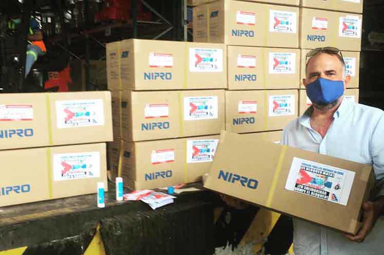 Precisó que ya fueron enviados a la isla dos contenedores con jeringuillas, en tanto otro está en proceso de ser embarcado con igual contenido para respaldar la campaña de inmunización, en medio de una difícil situación sanitaria debido al incremento de contagios y muertes diarias.