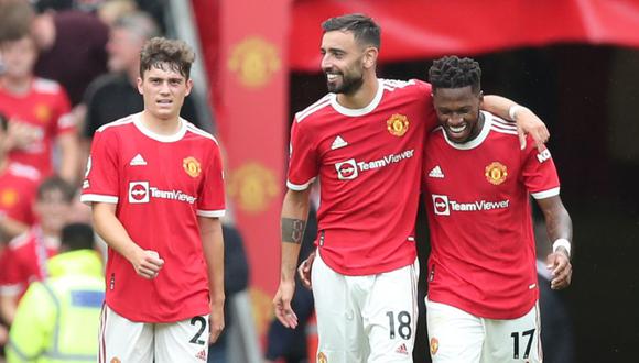 Por los diablos rojos Bruno Fernandes anotó un hat-trick y los otros tantos los marcaron Greenwood y Fred.