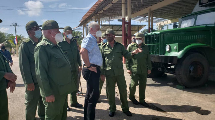 El presidente de Cuba, Miguel Díaz-Canel, recorrió este lunes la base aérea de San Antonio de los Baños, provincia de Artemisa, que concentra la producción de oxígeno medicinal para los centros de salud del país.