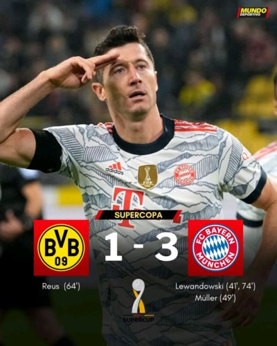 El Bayern de Múnich gana la Supercopa alemana: Con un doblete de Robert Lewandowski y otro tanto de Thomas Müller, el Bayern de Múnich derrotó 3-1 al Borussia Dortmund y se llevó la Supercopa, consiguiendo su noveno título.