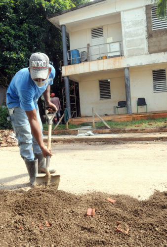 Yan Carlos, Yady Maqueira y Yenni Omar, tienen unos 20 años de edad, pero son muy responsables con la misión que les ha dado la empresa y aprovechan las jornadas para culminar lo antes posible este sitio, sobre todo ahora que el barrio precisa la atención primaria de salud, dado por el incremento de los casos de Covid-19 en los últimos días.