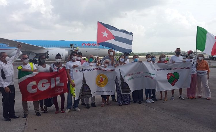 La operación solidaria convocada por la CGIL contó con el papel activo de la Embajada de Cuba en Italia, reconoció Bassoli, pues la representación diplomática facilitó la conexión y gestión ante autoridades cubanas competentes y la coordinación con otras campañas de solidaridad promovidas por organizaciones de la sociedad civil italiana. La convergencia de muchos actores permitió llegar a un acuerdo con la compañía aérea NEOS y coordinamos un vuelo especial, totalmente lleno con los materiales recolectados y comprados.