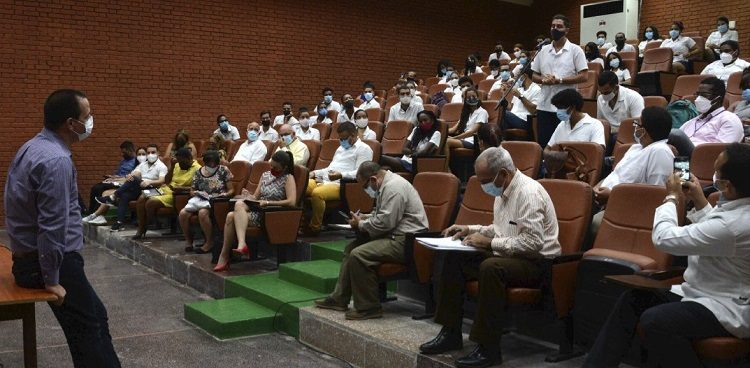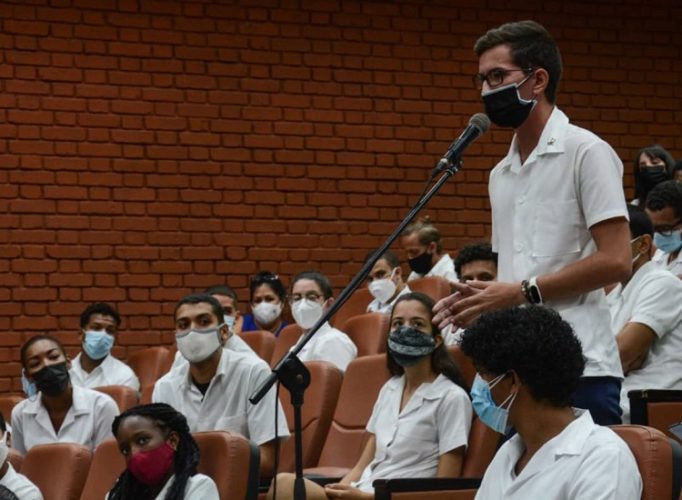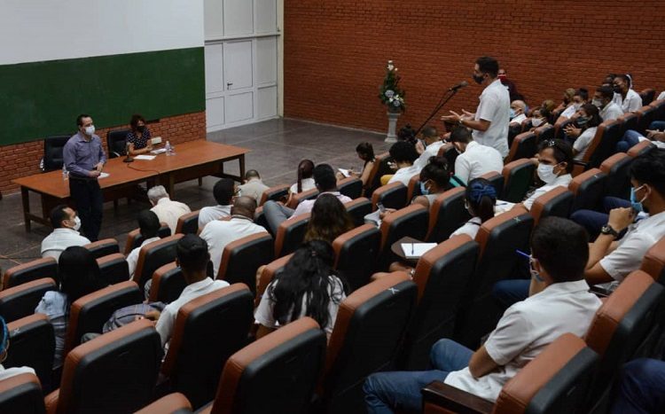 El intercambio, donde participó Mairim Lago Queija, rectora de la Universidad de Ciencias Médicas de La Habana, propició el diálogo con los educandos para conocer sus inquietudes y opiniones acerca de la formación profesional en medio de la compleja situación epidemiológica que atraviesa el país.