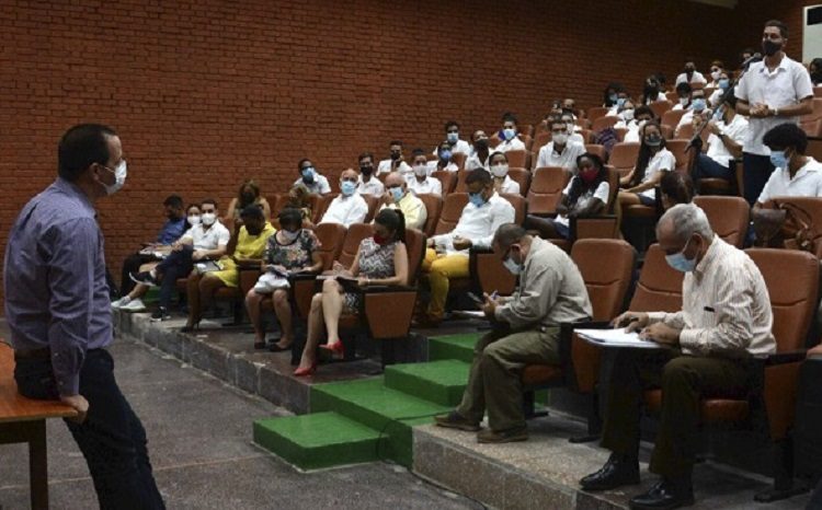 El intercambio, donde participó Mairim Lago Queija, rectora de la Universidad de Ciencias Médicas de La Habana, propició el diálogo con los educandos para conocer sus inquietudes y opiniones acerca de la formación profesional en medio de la compleja situación epidemiológica que atraviesa el país.