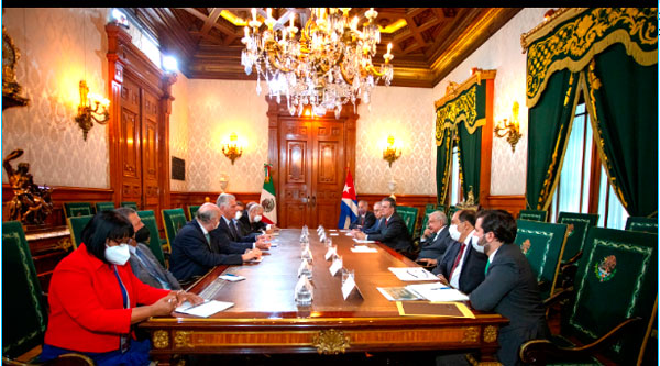 En ese cuadro se extiende la mano solidaria de México y el reclamo de su gobierno, encabezado por López Obrador, al de Estados Unidos para que levante el bloqueo y normalice las relaciones con La Habana, lo que motivó palabras de agradecimiento del mandatario caribeño.