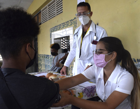 Abel Eduardo Frías y Elisa Montero están entre los adolescentes que muy temprano llegaron hasta el Instituto Politécnico de la Construcción, Blas Roca Calderío, ubicado en el reparto Martí, en el capitalino municipio del Cerro. Esta vez no traen libros ni libretas. Un momento especial los convoca: recibirán la primera dosis de la vacuna Soberana 02.