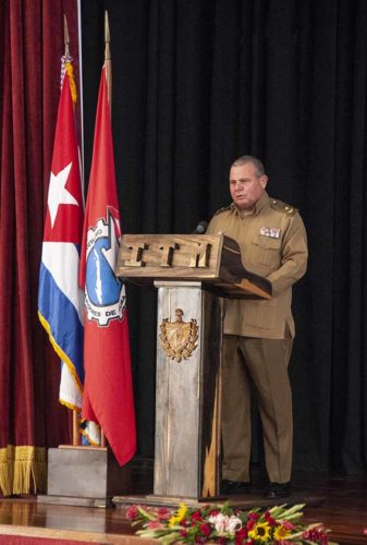 Presidieron la conmemoración, además, Isdalis Rodríguez Rodríguez, integrante del secretariado nacional de la Central de Trabajadores de Cuba (CTC), jefes y oficiales de los Ministerios de las Fuerzas Armadas Revolucionarias y del Interior, junto a otros invitados.