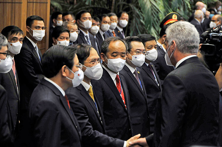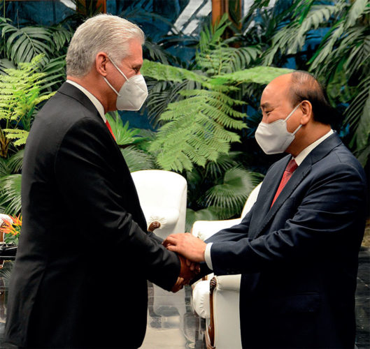 Por su parte, el mandatario vietnamita agradeció la oportunidad de visitar nuestro país por primera vez. Elogió el desarrollo alcanzado por Cuba en la esfera de la salud y la biotecnología, al tiempo que agradeció en nombre de su pueblo, Partido y Gobierno, la cooperación cubana en el enfrentamiento a la COVID-19, expresado en el suministro y transferencia tecnológica de la vacuna cubana.
