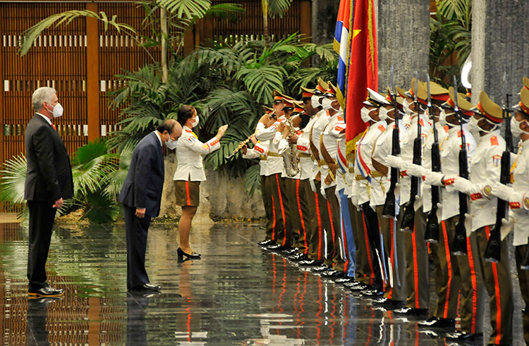 El Primer Secretario del Comité Central del Partido Comunista de Cuba y Presidente de la República, Miguel Díaz-Canel Bermúdez, recibió este domingo al Presidente de la República Socialista de Vietnam y miembro del Buró Político del Comité Central del Partido Comunista, compañero Nguyen Xuan Phuc, quien se encuentra de visita oficial en nuestro país.