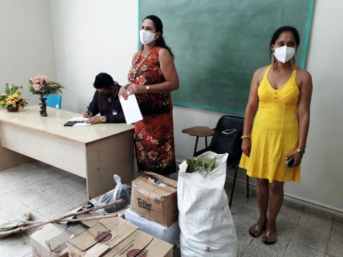 Con la sencillez y la modestia que caracterizan a las buenas personas, Niurka Barraza Cedeño dice a los anfitriones: “Es un granito de arena en esta obra tan grande que ustedes levantan todos los días en defensa de la Salud y la vida de la población amenazada por la pandemia, y es fruto del altruismo de nuestros afiliados. Recíbanlo como muestra de aprobación a los esfuerzos que hacen”.